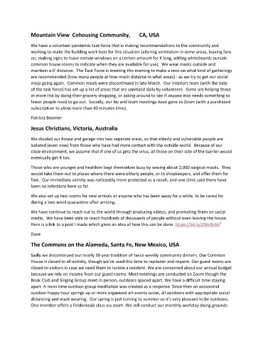 One member offers a Feldenkrais class via zoom. We still conduct our monthly workday doing grounds