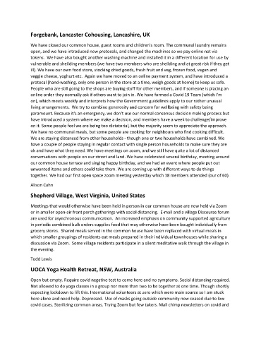 grocery stores. Shared meals served in the common house have been replaced with virtual meals in