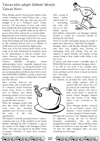 Taiwan tribe adopts 'kibbutz' lifestyle