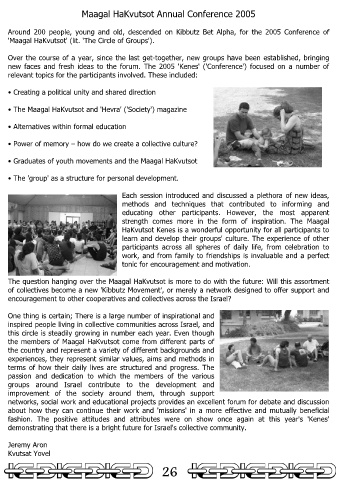 new faces and fresh ideas to the forum. The 2005 'Kenes' ('Conference') focused on a number of