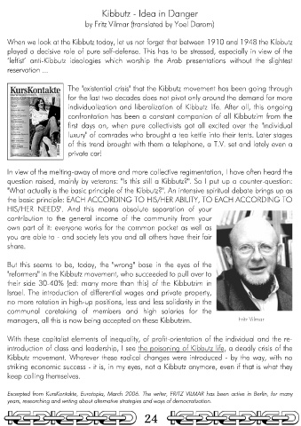 ExcerptedExcerpted from KursKontakte, Eurotopia, March 2006. The writer, FRITZ VILMAR has been active in Berlin, for many from KursKontakte, Eurotopia, March 2006. The writer, FRITZ VILMAR has been active in Berlin, for many