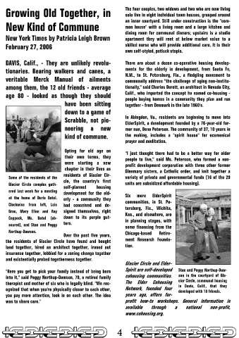 therapist and mother of six who is legally blind. "We rec- The Elder Cohousing cier Circle, communal housing