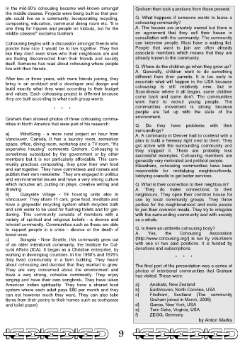 about cohousing and decided that they wanted to grow. The final part of the presentation was a series of