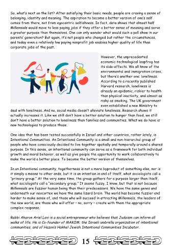 walks of life. He is Co-founder of MAKOM: the Israeli umbrella organization of intentional